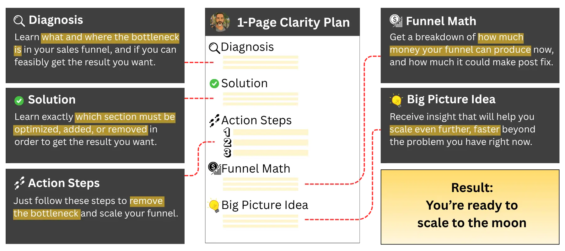 You’ll receive a 1-Page Clarity Plan that zooms in on exactly: